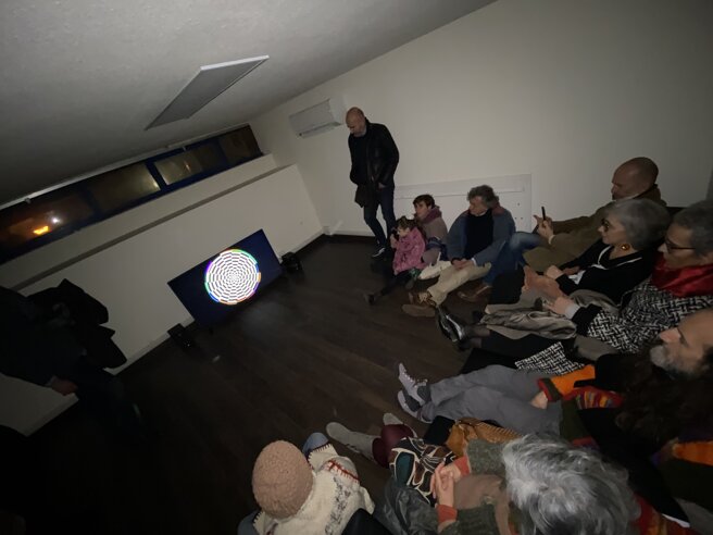Porte aperte dalle ore 16.00 per giungere verso le 17.15 alla live performance audiovisiva di Carlo Fatigoni che sonorizzerà un suo film lettrista dal titolo “Fissoautomobile".